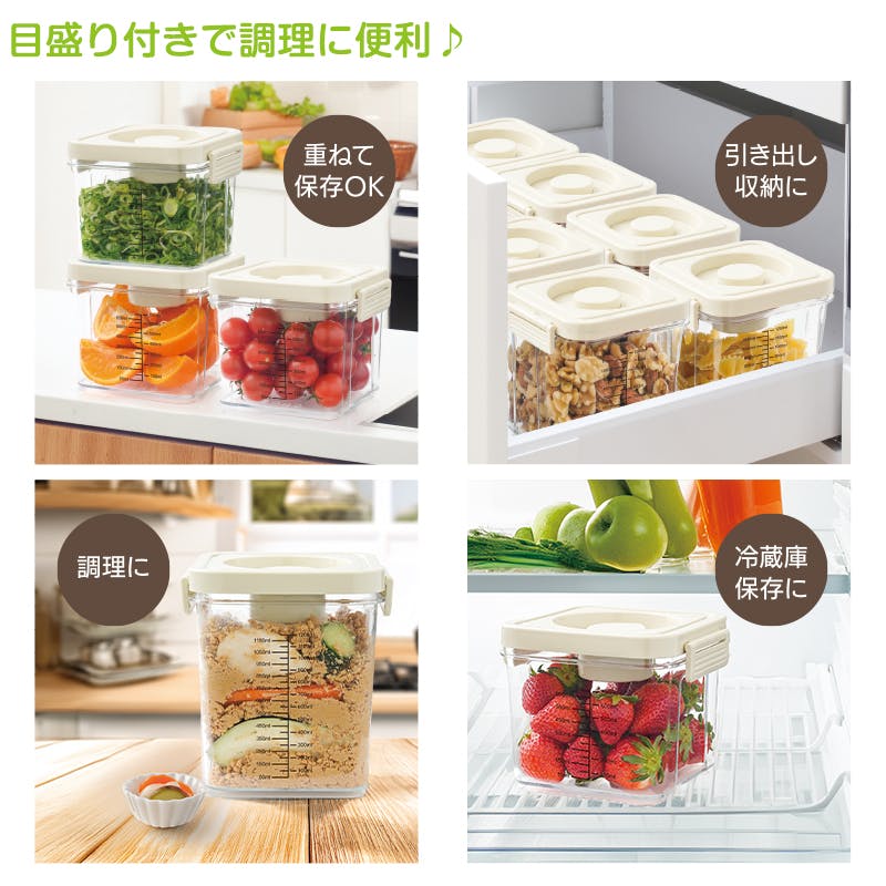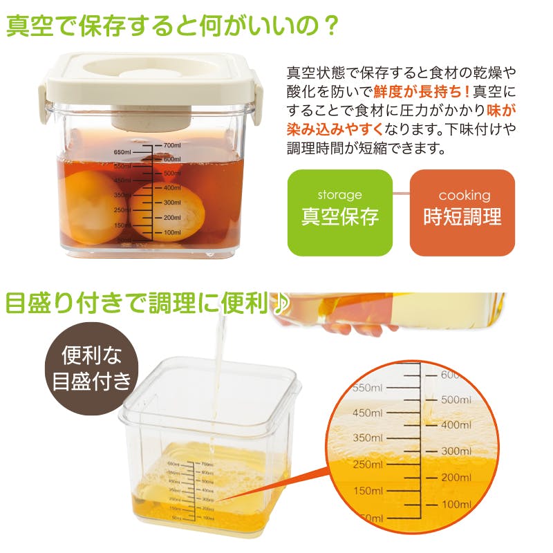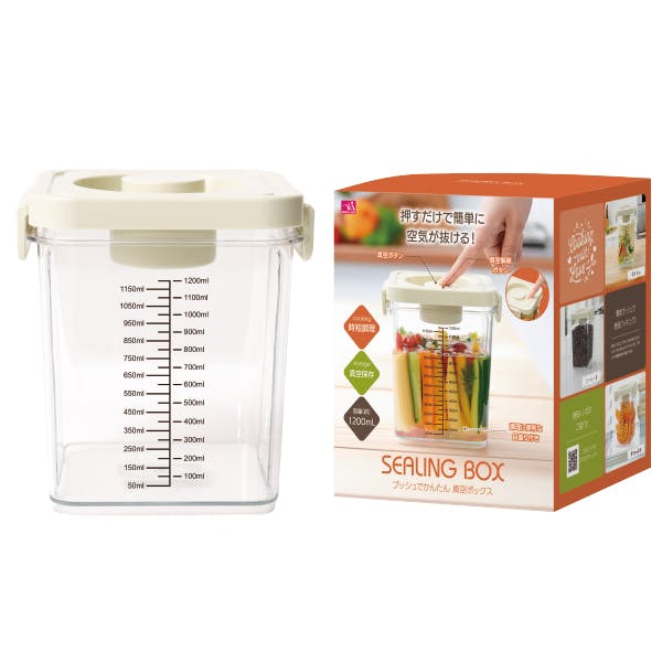 【プッシュでかんたん 真空ボックス 1200mL】 ちあふる 押すだけ真空で鮮度キープ 下味時短 冷蔵庫整理 目盛付き 収納 JAN:4571414698771