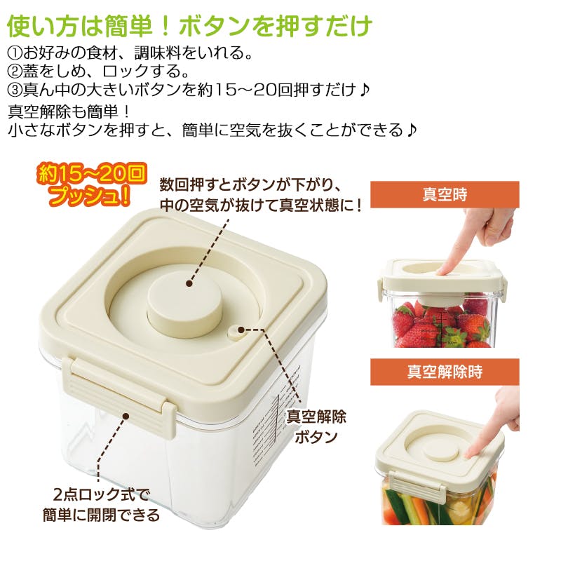 【プッシュでかんたん 真空ボックス 1200mL お得な2個セット】 ちあふる 大容量でまとめ保存 押すだけ真空 下味時短 目盛付き 冷蔵庫整理 JAN:4571414698771