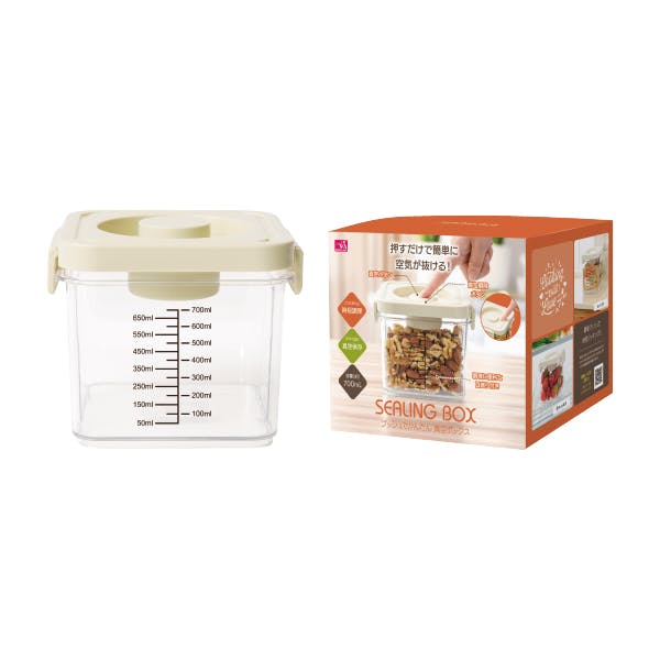 【プッシュでかんたん 真空ボックス 1200mL・700mL セット(各1個)】 ちあふる 押すだけ真空で鮮度キープ 下味時短 冷蔵庫整理 目盛付き 収納 JAN:4571414698771/4571414698788