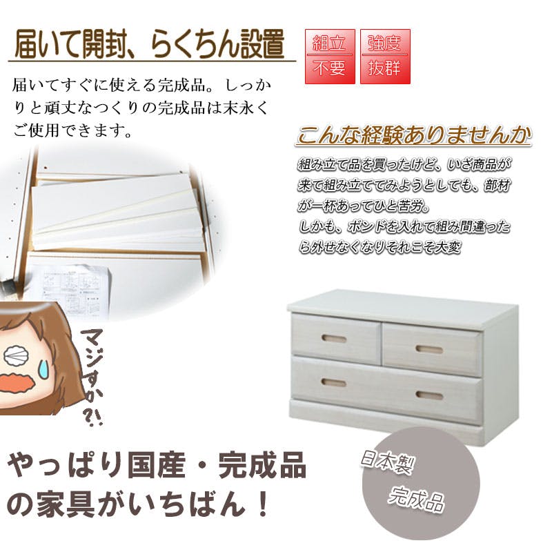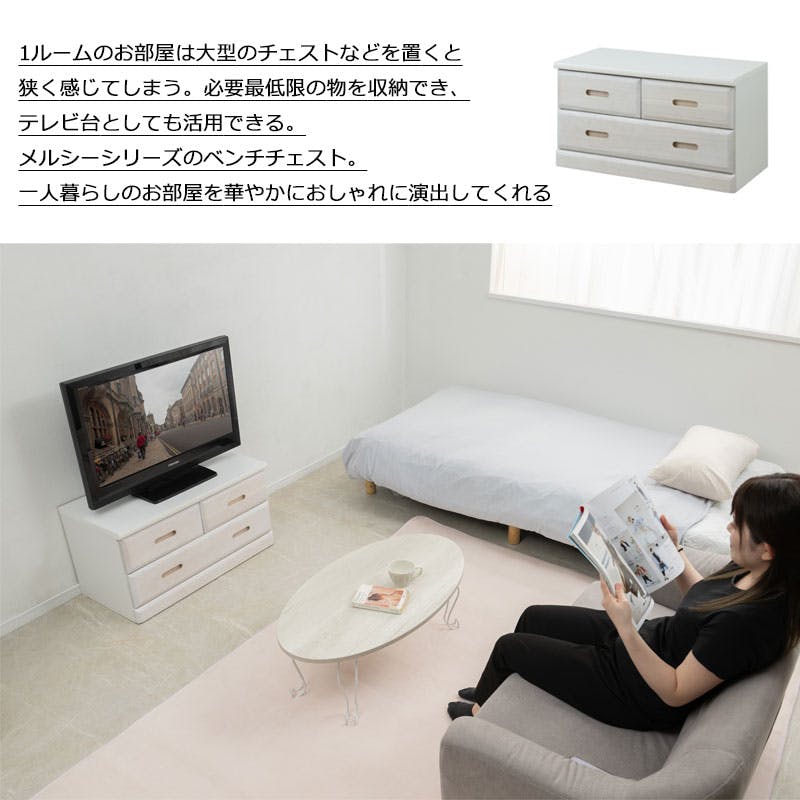 • 【MERCI】天然木でやさしい曲線加工の桐ベンチチェスト ホワイト 幅80 3杯 大引出しのみスライドレール付き 仕切り板付き 日本製 国産 収納 たんす 箪笥 アンティーク 衣類収納 新生活 一人暮らし