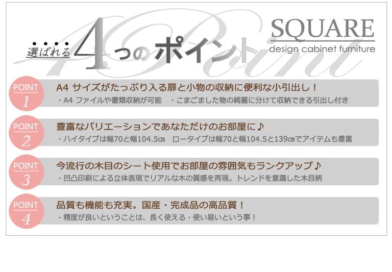 ■商品の仕様/前板・天板:強化プリント紙化粧繊維板、その他:プリント紙化粧繊維板