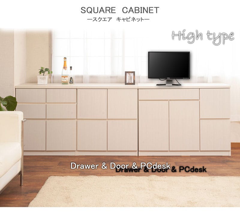【SQUARE】シリーズ スクエアキャビネット幅104.5ハイ 引出しタイプ ホワイト モダン 家具 インテリア キャビネット おしゃれ 完成品 リビング収納 引き出し チェスト ナチュラル 木製 白 キッチン収納 リビングボード テレビボード 日本製