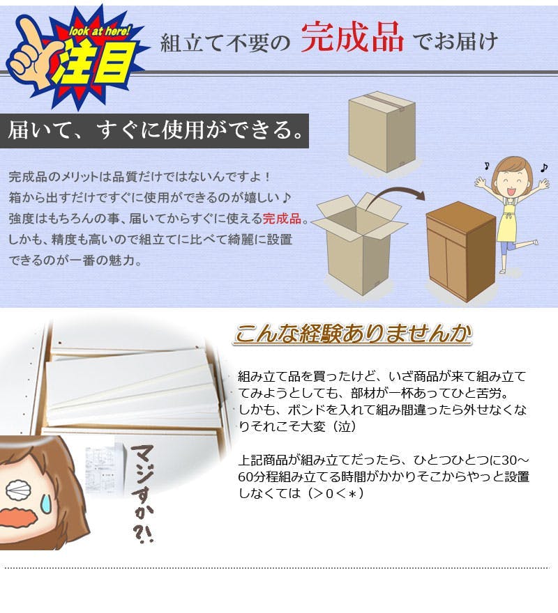 ■商品の仕様/前板・天板:強化プリント紙化粧繊維板、その他:プリント紙化粧繊維板