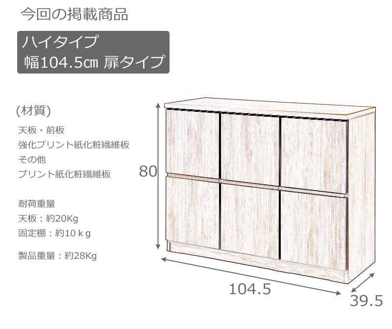 ■商品サイズ/本体:(約)幅104.5×奥行39.5×高さ80cm、扉内有効内寸:(約)幅29.5×奥行35.5×高さ31cm■商品重量/(約)28kg■商品耐荷重/天板:20kg、棚板:10kg■日本製■完成品
