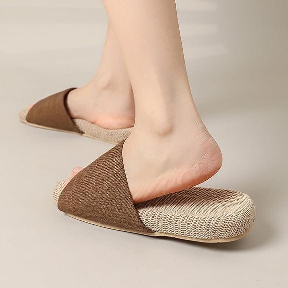足さらさらな室内スリッパ!麻ので涼しさアップ。前開きデザイン、通気性が良く、足が蒸れません。吸収性や発散性に優れており、防臭効果もあります。