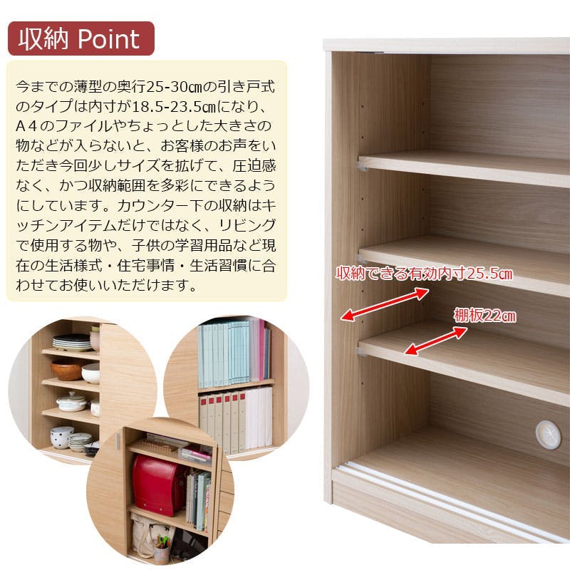 ■商品サイズ/本体:(約)幅90×奥行32×高さ88cm■扉内寸/(約)幅(左右内寸共通)41.5×奥行22(有効25.5)(棚後ろ1cm隙間あり)×高さ78cm■棚板/可動式:6枚(6cmピッチ・10段階)■巾木よけ高さ/(約)6.5cm■耐荷重量/(約)天板:10kg、棚板:5kg■商品重量/(約)23kg■日本製■完成品