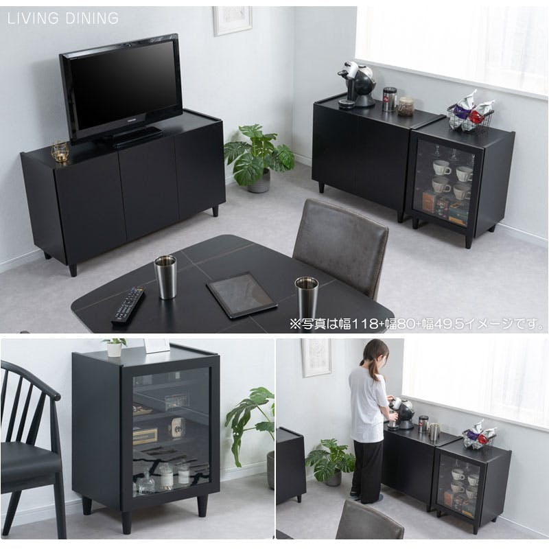 【SHADOW】 キャビネット 幅118 奥行39 高さ68.5 完成品 日本製 木製 収納棚 リビング ブラックインテリア 収納 棚 ラック 扉付き リビングボード ローボード テレビ台 テレビボード 本棚 書棚