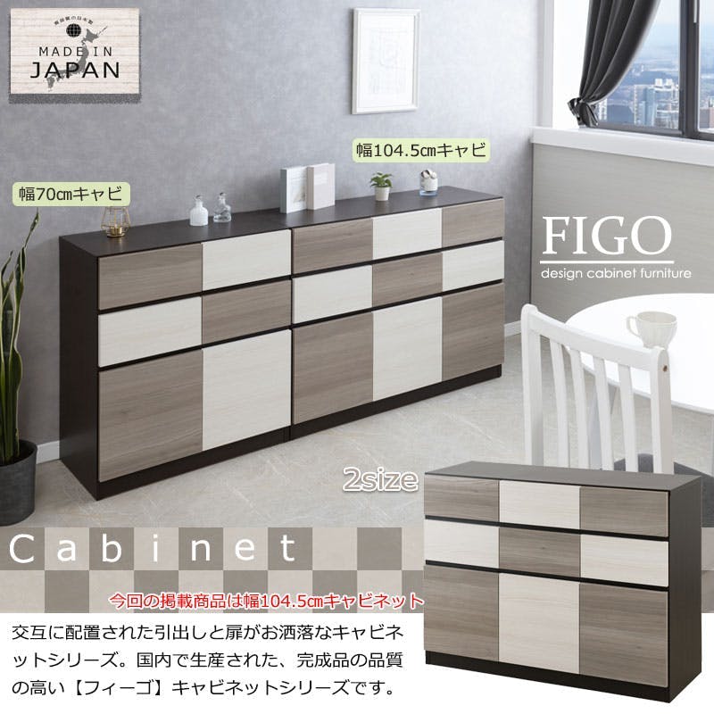 【Figo】幅104.5 奥行39 高さ77.5cm スクエアキャビネット 日本製 完成品 スライドレール付き 扉付き 扉+引出し A4収納 サイドボード キャビネット 大容量 収納 大川 大川家具 国産 書棚 本棚 テレビボード