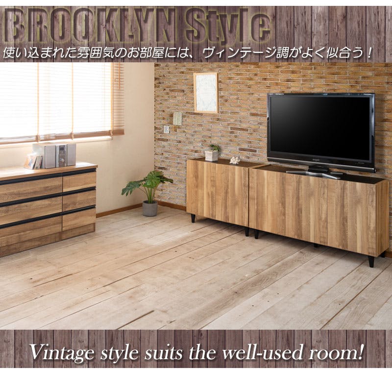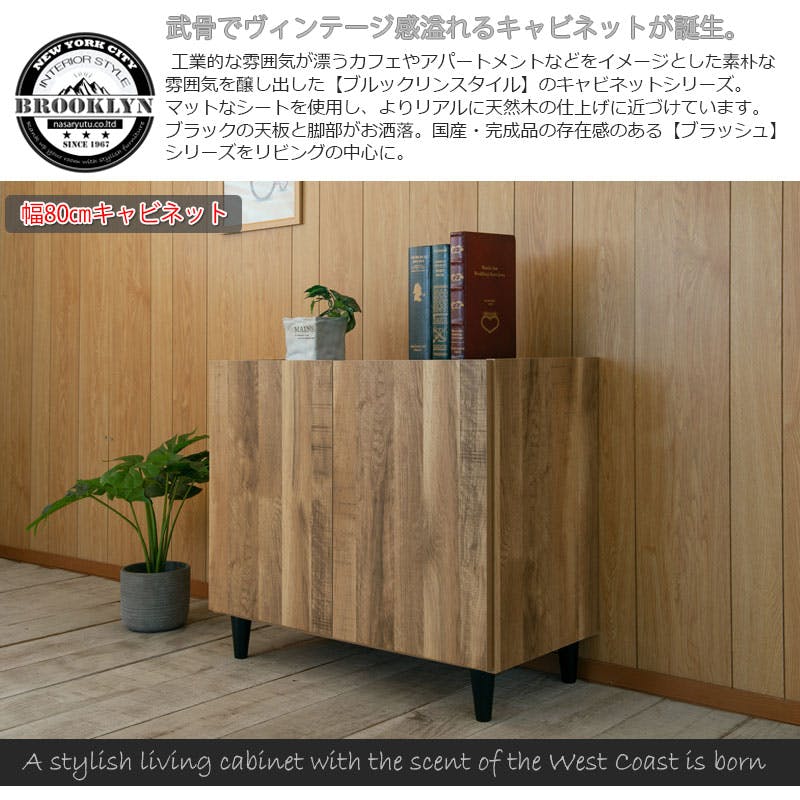【BRASH】お洒落なブルックリンスタイル 幅80 奥行39 高さ68.5 キャビネット ナチュラル 完成品 日本製 ヴィンテージ 木製 収納棚 リビング 収納 棚 おしゃれ 扉付き リビングボード テレビボード