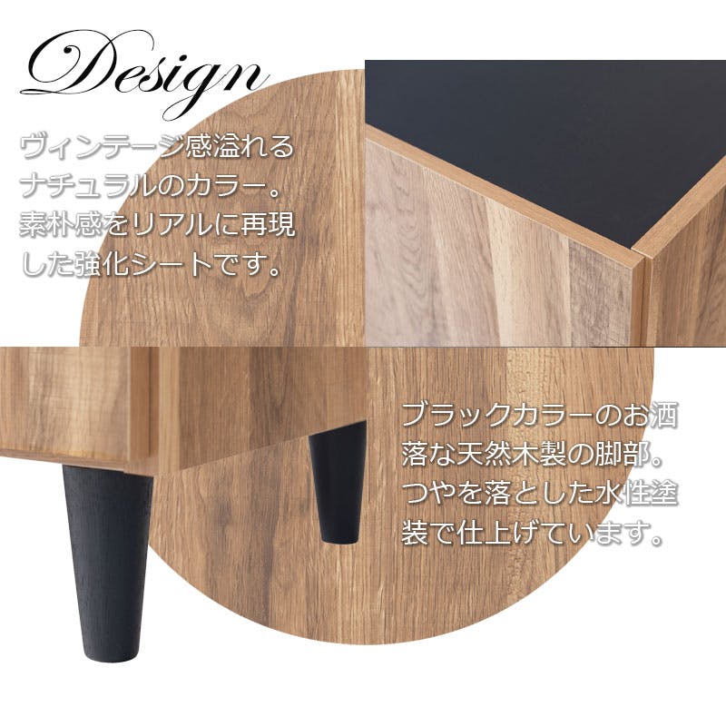 ■商品の仕様/前板・天板:強化プリント紙化粧繊維板、側板:プリント紙化粧繊維板、脚部:天然木ラバーウッド