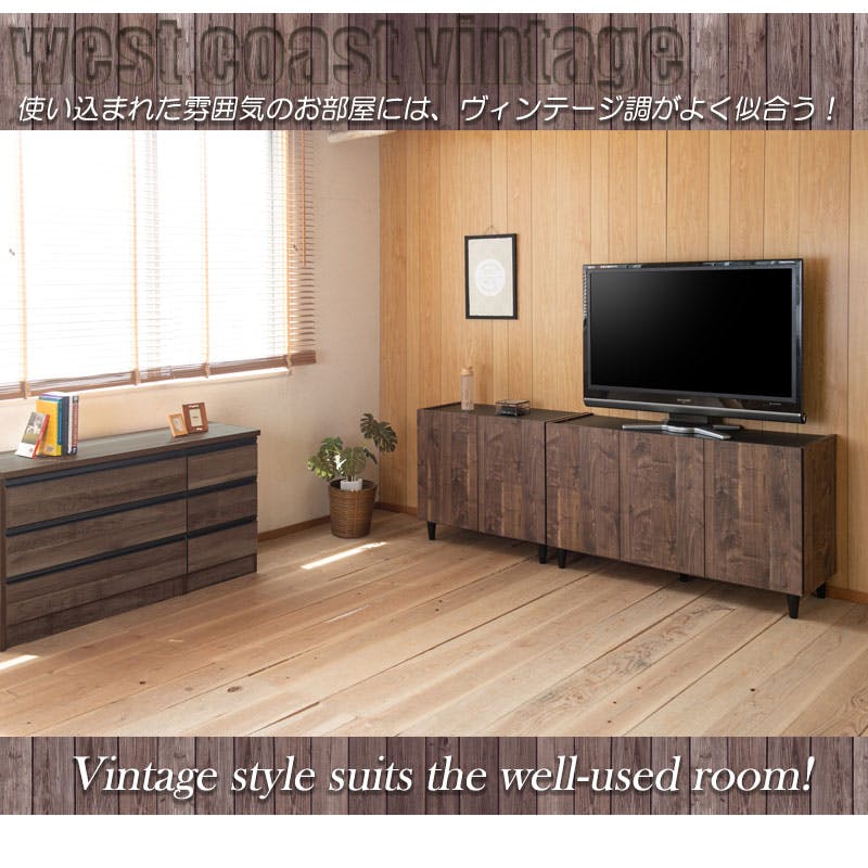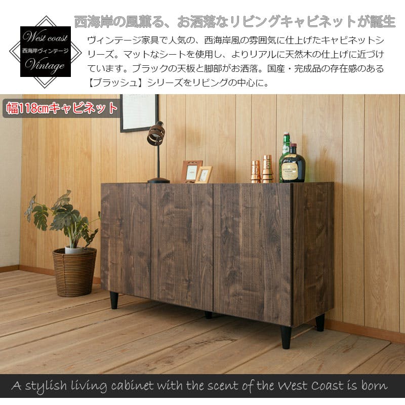 【BRASH】お洒落なヴィンテージリビングキャビネット 幅118 奥行39 高さ68.5 キャビネット ブラウン 完成品 日本製 ヴィンテージ 木製 収納棚 リビング 収納 棚 おしゃれ 扉付き リビングボード テレビボード
