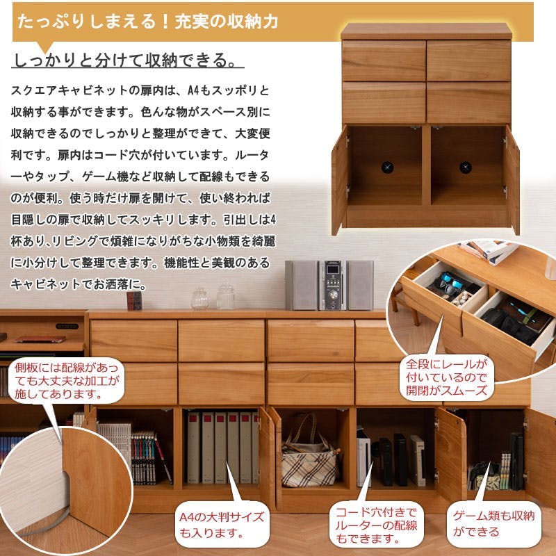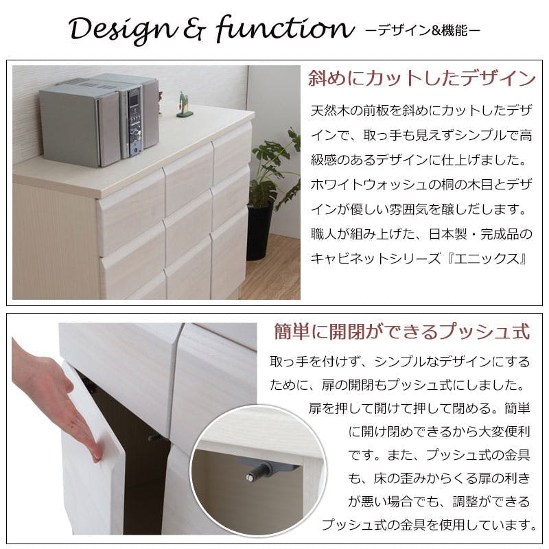 天然木製の国産・完成品 【Enix】 幅72 奥行35.5 高さ83cm 日本製 完成品 扉+引出しタイプ ホワイトウォッシュ 桐材 天然木 プッシュ式 国産 キャビネット 扉 北欧 大川 家具 リビング スクエア SQUARE