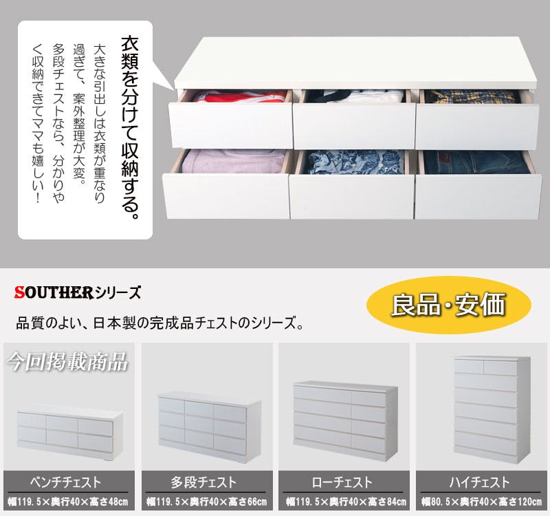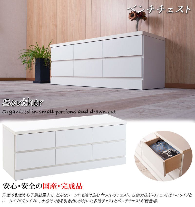 ホワイトベンチ型チェスト 幅120 2段 6杯 日本製 完成品 チェスト 洋服ダンス 洋服タンス 白 引き出し ホワイト たんす 収納タンス 木製 おしゃれ 衣類収納 整理タンス クローゼット ロータイプ ベンチチェスト 収納家具 木製 モダン リビング 引出し リビングチェスト