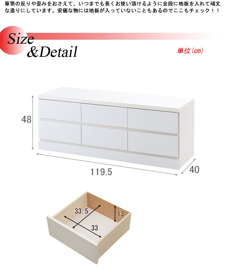 ■商品サイズ/本体:(約)幅119.5×奥行40×高さ48cm<br>■引出し内寸/共通(約)幅33×奥行33.5×深さ13cm<br>■耐荷重量/天板:(約)20kg■商品重量/(約)25kg<br>■日本製■完成品