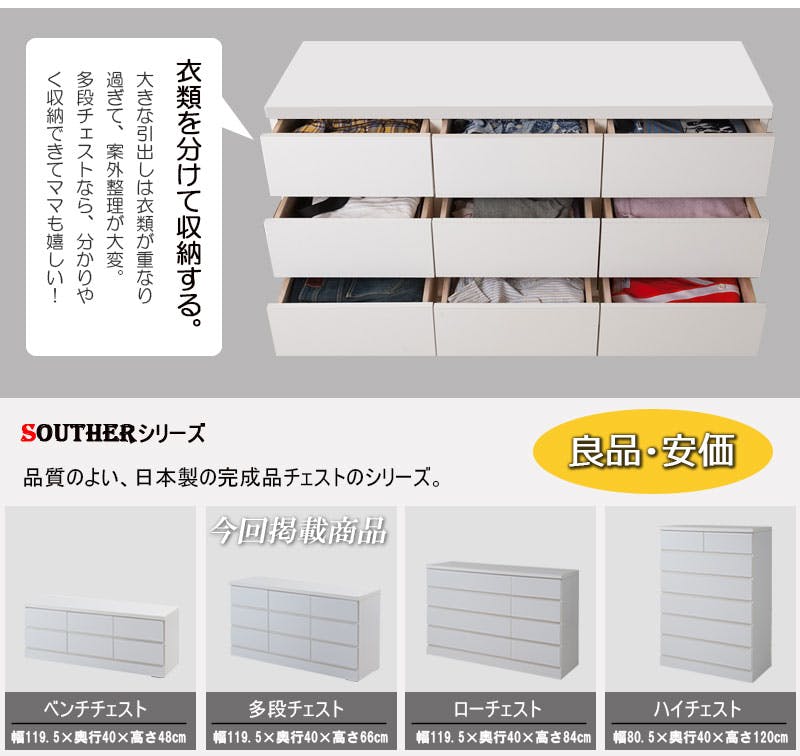 ローチェスト 幅120cm 多段タイプ 3段 9杯 日本製 完成品 チェスト 洋服ダンス 洋服タンス 白 引き出し ホワイト たんす 収納タンス 木製 おしゃれ 衣類収納 整理ダンス 整理タンス クローゼット ロータイプ リビング収納 リビングチェスト 引出し 家具