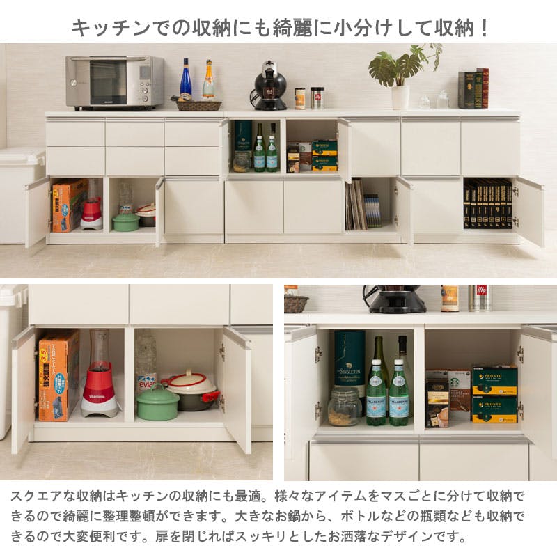 【JUCEE】シリーズ スクエアキャビネット幅73cm 扉タイプ ホワイト ブラウン スクエア 収納キャビネット キッチン 収納棚 キッチン収納 収納家具 キッチン収納棚 おしゃれ 台所 キッチン家具 ロータイプ キッチンキャビネット