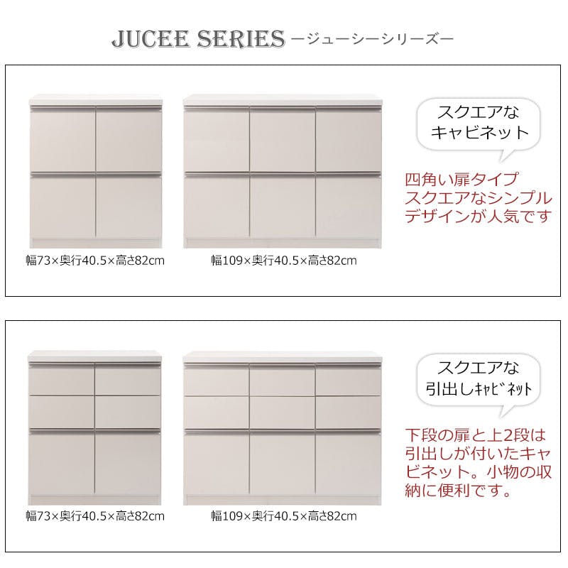 【JUCEE】シリーズ スクエアキャビネット幅73cm 引出しタイプ ホワイト ブラウン スクエア 収納キャビネット キッチン 収納棚 キッチン収納 収納家具 キッチン収納棚 おしゃれ 台所 キッチン家具 ロータイプ キッチンキャビネット キャビネット