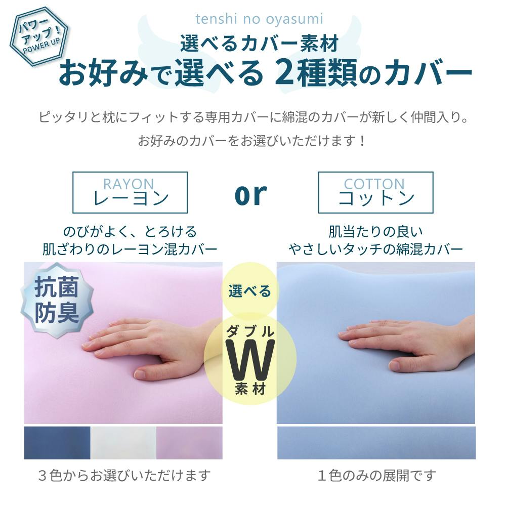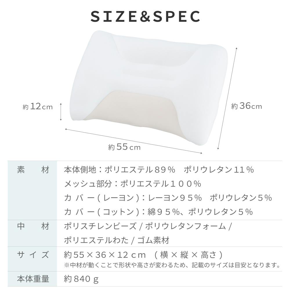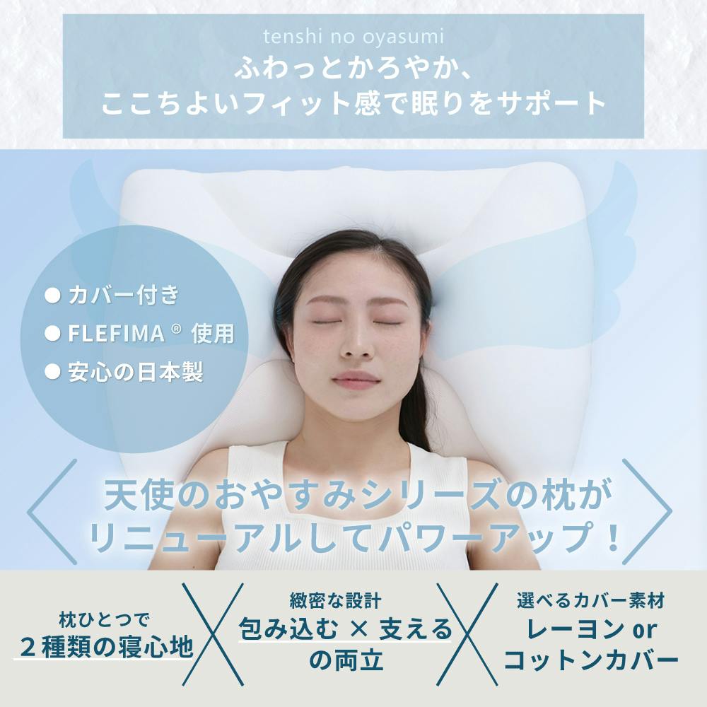 〇両サイドが盛り上がった形状で、横向き寝でも肩が圧迫されず理想的な体のラインをつくりだす 〇こだわりの構造と特許取得の技術「FLEFIMA®」でバランスの良い配合の中材 〇優れた体圧分散性で一部分だけに体圧がかかる状態を解消 〇選べる2つのカバー素材!抗菌防臭生地でとろける肌ざわりのレーヨンカバー、肌当たりの良いやさしいタッチのコットンカバー 〇市販の枕カバーにも入るサイズ(43×63cmサイズ) 〇カバー、枕も洗濯ネットに入れれば洗濯機で丸洗い可能!