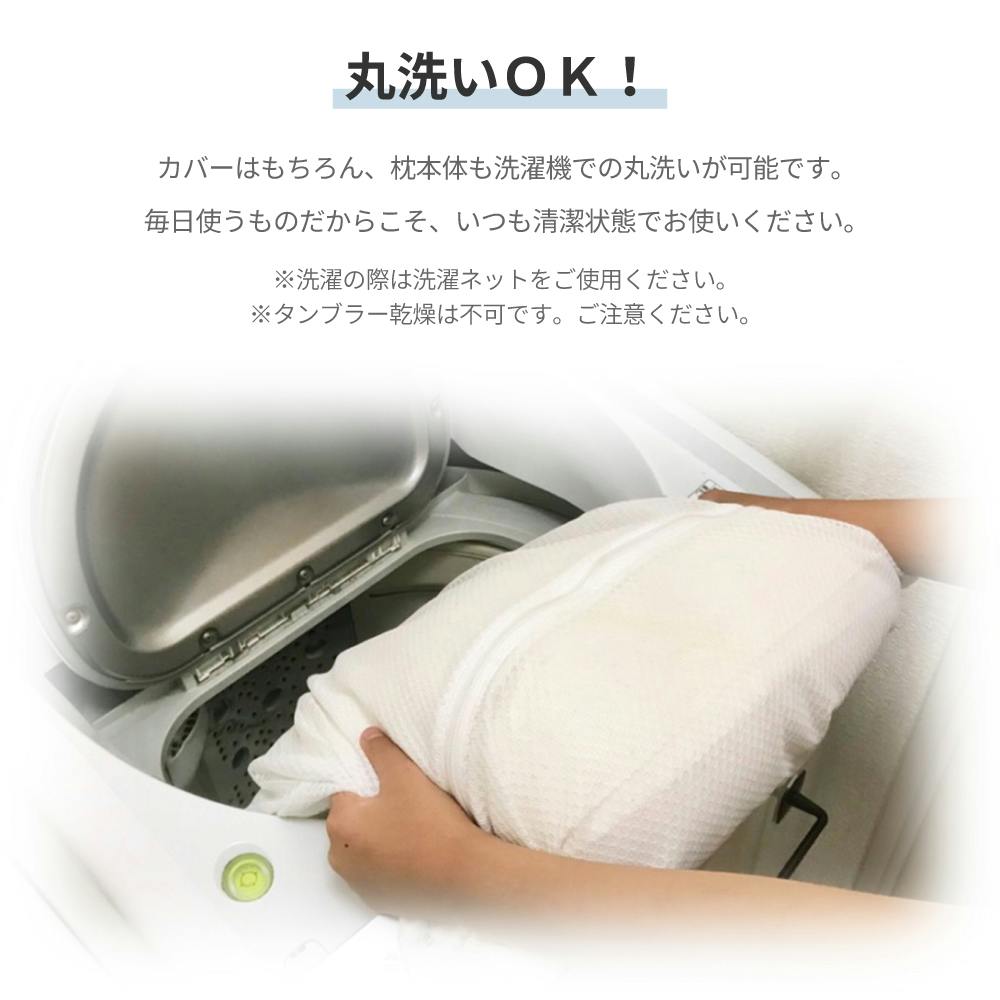 ・長期間のご使用により生地・縫製強度・中材は劣化します。劣化が著しい場合は 枕本体の洗濯はお避けください。・ 万が一中材がもれた場合は排水管の不具合の原因になる可能性がありますので流さずにすくい取って廃棄してください。・型崩れを防ぐため、洗濯後は形をきちんと整えてから干してください。・枕カバーを洗濯する際、色落ちや色移りすることがありますのでご注意ください。・上記洗濯方法が守られなかった場合の事故等につきましては、一切の責任を負いかねますのでご注意ください。