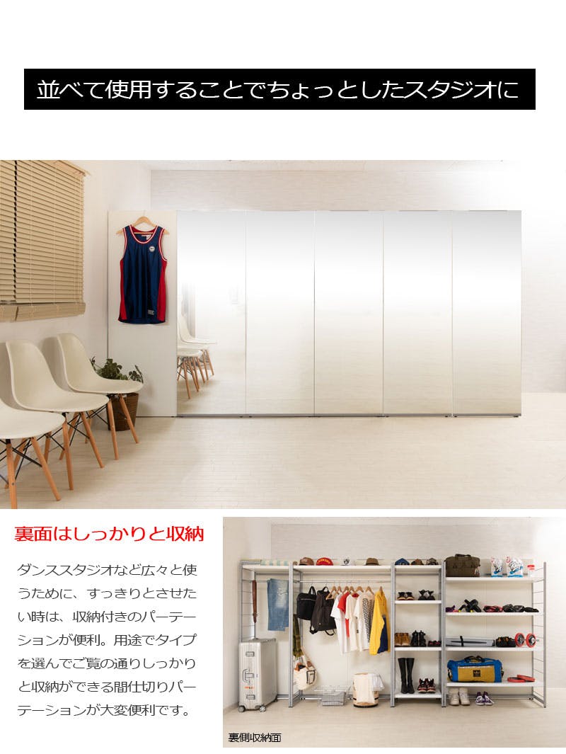 並べて使うことができる間仕切りミラー付きパーテーション 4段ラック 幅120 ブラウン 衝立 家具 事務所 オフィス 仕切り 鏡 日本製 パーティション ラダーラック
