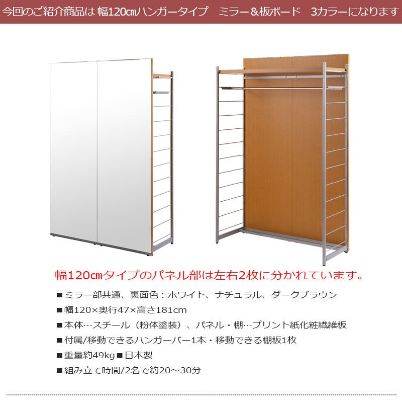 ■商品サイズ/本体:(約)幅120×奥行47×高さ181cm、ラダー間隔 :(約)14cm■棚板/可動式1枚(14cmピッチ12段)、ハンガーバー/1本(14cmピッチ可動)■耐荷重量/棚板:(約)20kg■商品重量/(約)49kg■日本製■組立品(組立時間:2名で約30分)