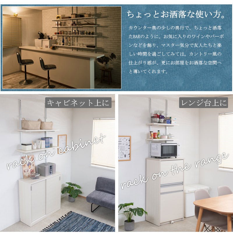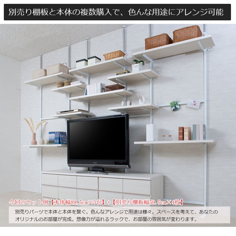 【CHEDDER】 チェダーシリーズ 突っ張り壁面収納 無段階調整2枚棚オープンラック 幅59.5cm ホワイトウォッシュ シェルフ プロジェクター台 つっぱり棚 つっぱりラック 収納棚 収納ラック オープンラック 壁面収納 壁面ラック ホワイト