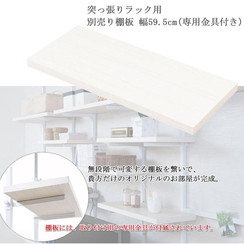 【CHEDDER】 チェダーシリーズ用 追加棚板1枚 幅59.5cm 取付金具セット ホワイトウォッシュ ※本体別売り 無段階調整 オープンシェルフ つっぱり棚 つっぱりラック 収納棚 収納ラック オープンラック 壁面収納 オープンラック ホワイト