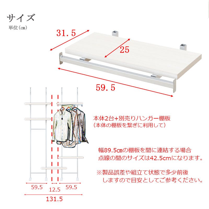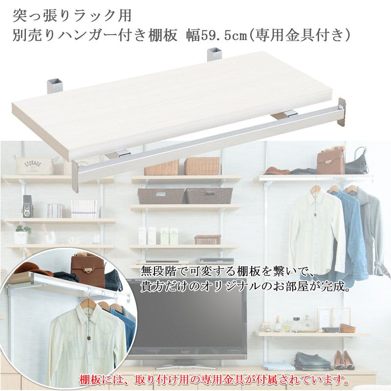 【CHEDDER】 チェダーシリーズ用 別売りハンガー棚 幅59.5cm 取付金具セット ホワイトウォッシュ ※本体別売り 無段階調整 オープンシェルフ つっぱり棚 つっぱりラック 収納棚 収納ラック オープンラック インテリア 壁面収納 ホワイト