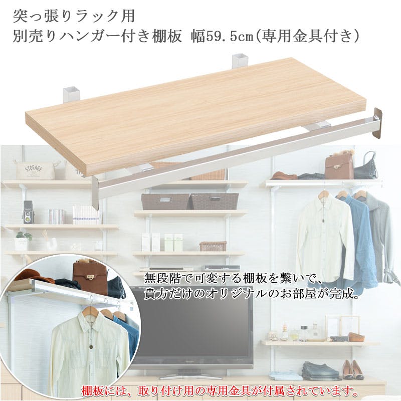 【CHEDDER】 チェダーシリーズ用 別売りハンガー棚 幅59.5cm 取付金具セット マリンナチュラル ※本体別売り 無段階調整 オープンシェルフ つっぱり棚 つっぱりラック 収納棚 収納ラック オープンラック インテリア 壁面収納 ナチュラル