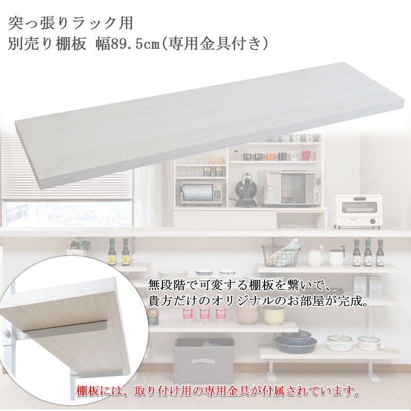 【BALE】 ベールシリーズ カウンター下収納ラック用 追加棚板1枚 幅89.5cm 取付金具セット ホワイトウォッシュ ※本体別売り 無段階調整 オープンシェルフ つっぱり棚 つっぱりラック 収納棚 収納ラック オープンラック インテリア