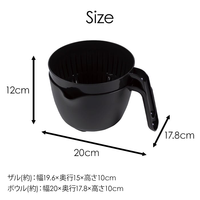 ■[ザル]幅19.6×奥行15×高さ10cm ■[ボウル]幅20×奥行17.8×高さ10cm
