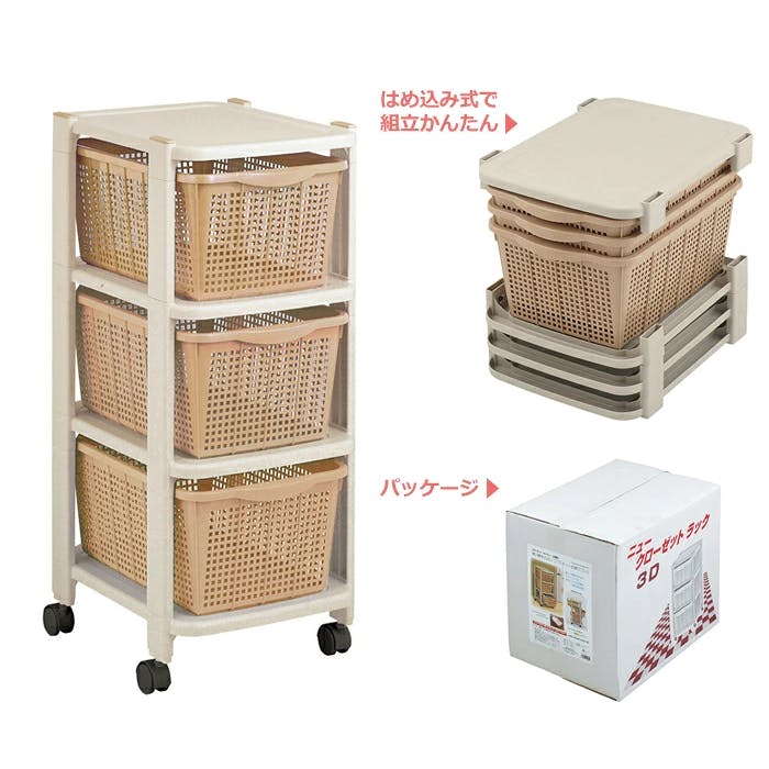 脱衣所、キッチン、お部屋等さまざまな場所で活躍する収納ラック。バスケットは軽く、通気性がよく、また指が掛かりやすいので持ち運びにも便利です。キャスター付きで移動もラクラク。
