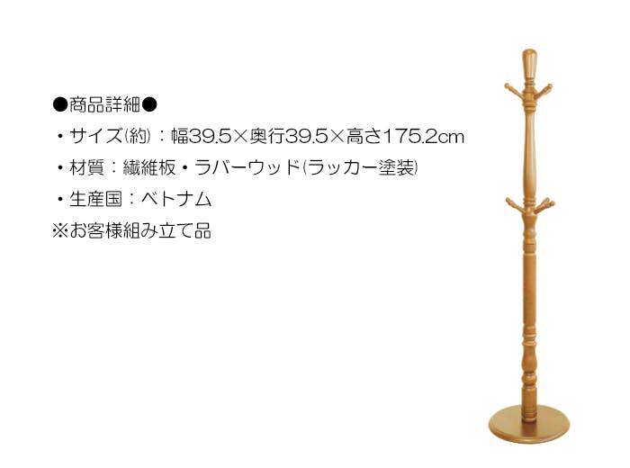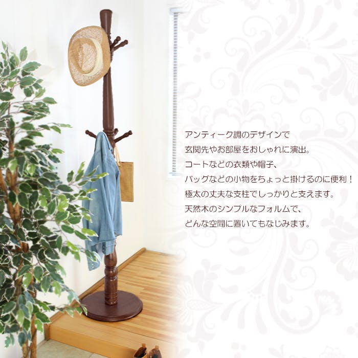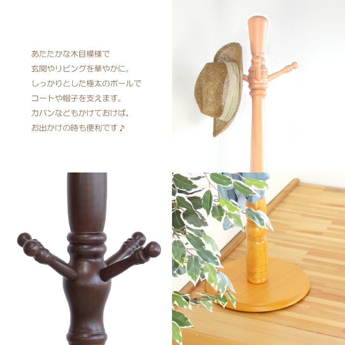 ポールハンガー 極太 コートハンガー 衣類収納 かばん掛け 帽子掛け ハンガーラック 木製 おしゃれ ポールスタンド