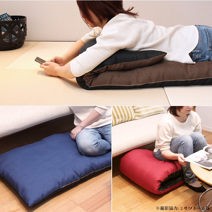ソファで使われるようなざっくり生地の質感がおしゃれな長座布団カバーとヌードクッションのセットです。ファスナー付きで長座布団の出し入れが容易です。座ったり、寝転んだり、壁に当てて座椅子代わりにしたり、幅広くお使いいただけます。シンプルな無地のカラーなので、和室・洋室を選ばずご使用いただけます。(カバーの裏面は黒のナイロン系生地となっております。)