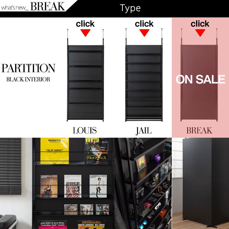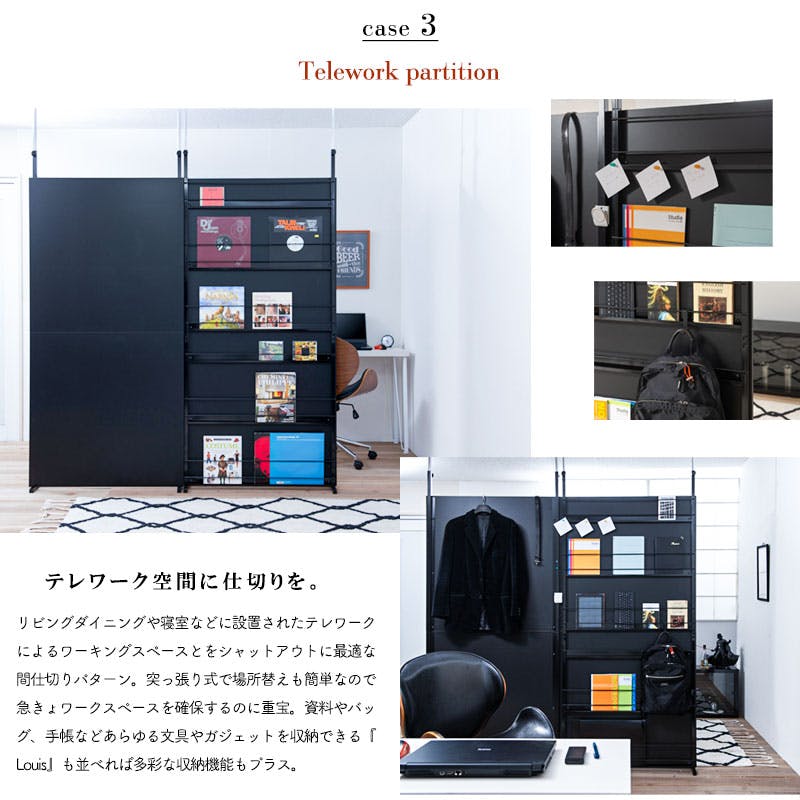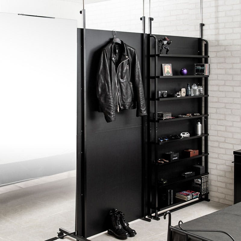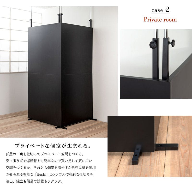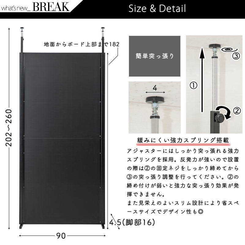 【BREAK】突っ張り間仕切りパーテーション スタンダードタイプ 幅90cm 日本製 黒 オールブラック ウォールラック 壁面収納 おしゃれ パーティション サロン 待合室 仕切り つっぱり テレワーク DIY 店舗 机仕切り