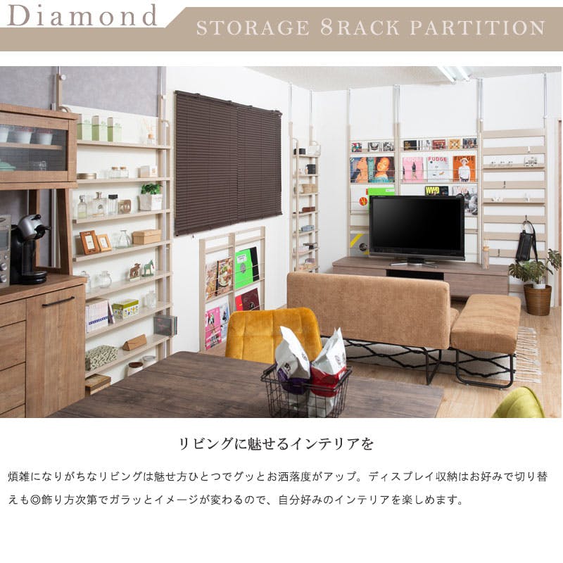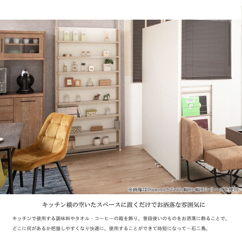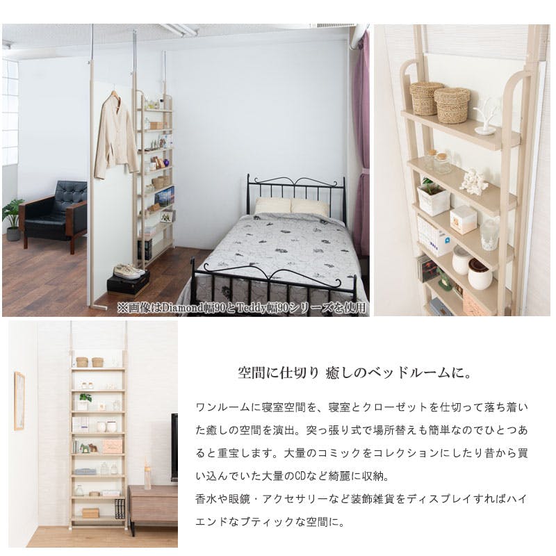【Diamond】 突っ張り間仕切り 幅60 パーテーション コミック 日本製 ベージュ グレージュ くすみカラー スチールラック ウォールラック 壁面収納 パーティション 靴 サロン 待合室 仕切り つっぱり テレワーク DIY 店舗
