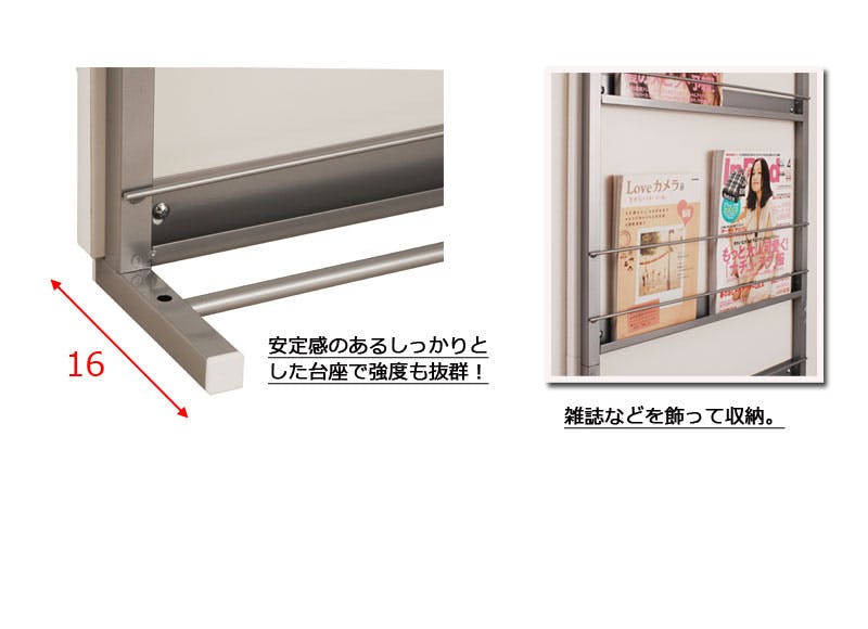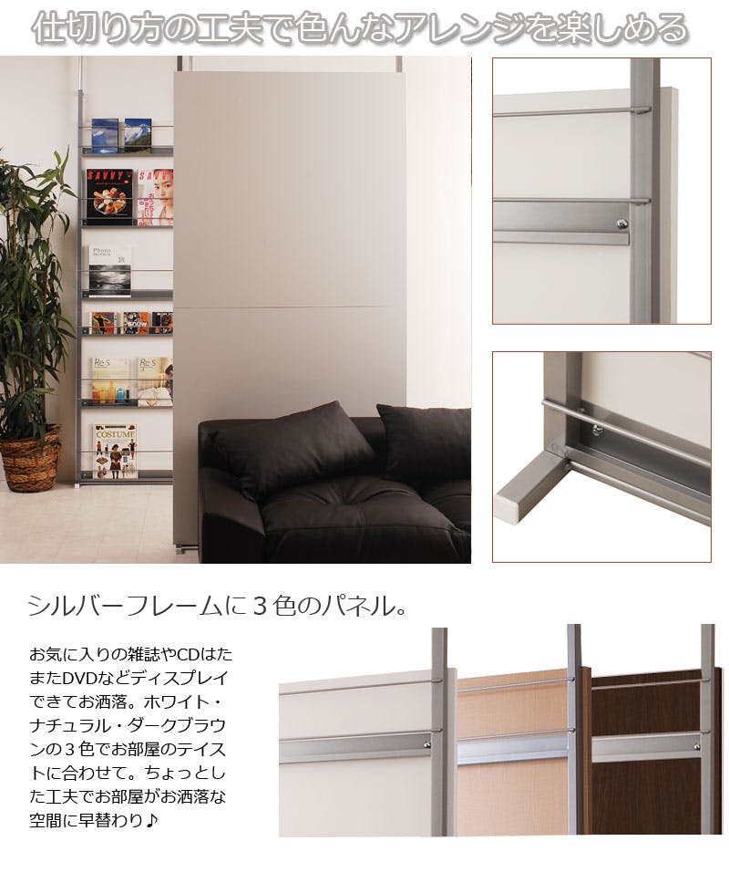 突っ張り間仕切りパーテーション幅60cm マガジンタイプ ホワイト パーテーションラック ウォールラック 壁面ラック ラック おしゃれ パーティション マガジンラック 間仕切り パーテーション