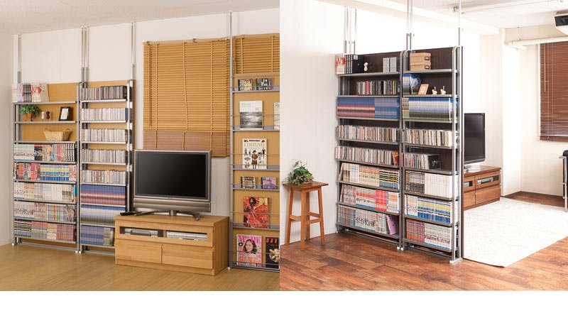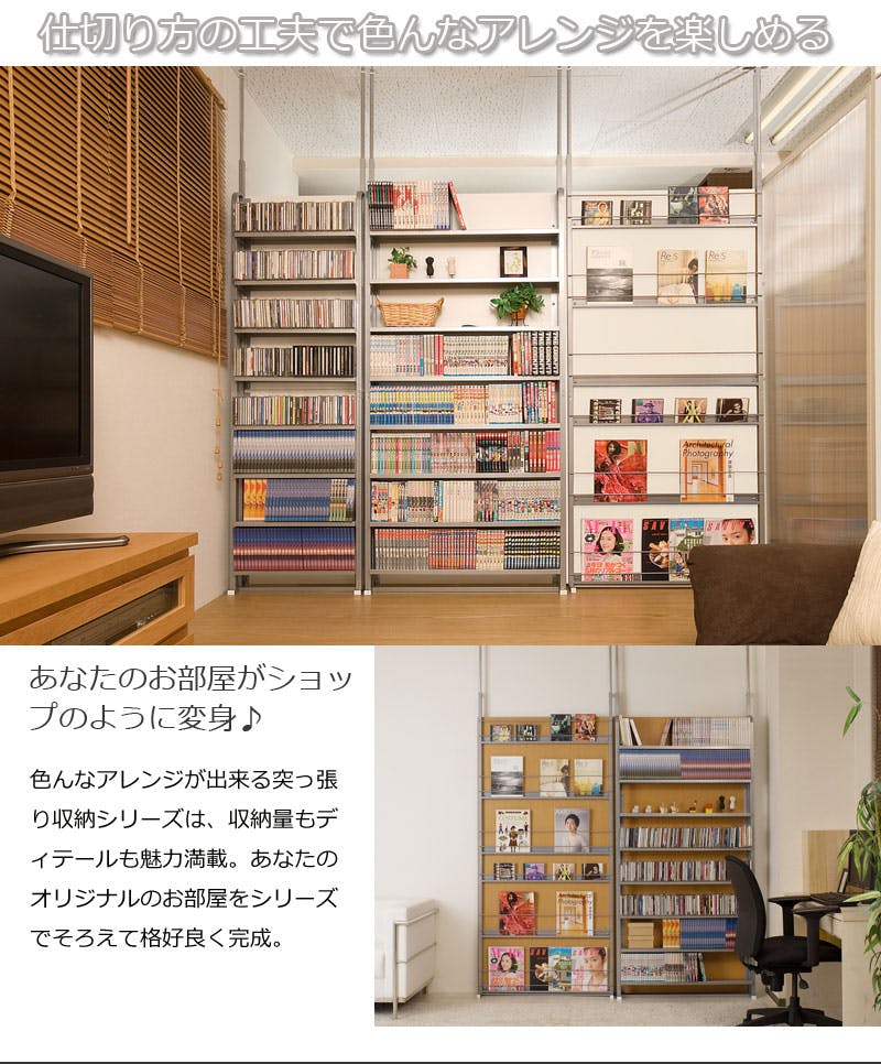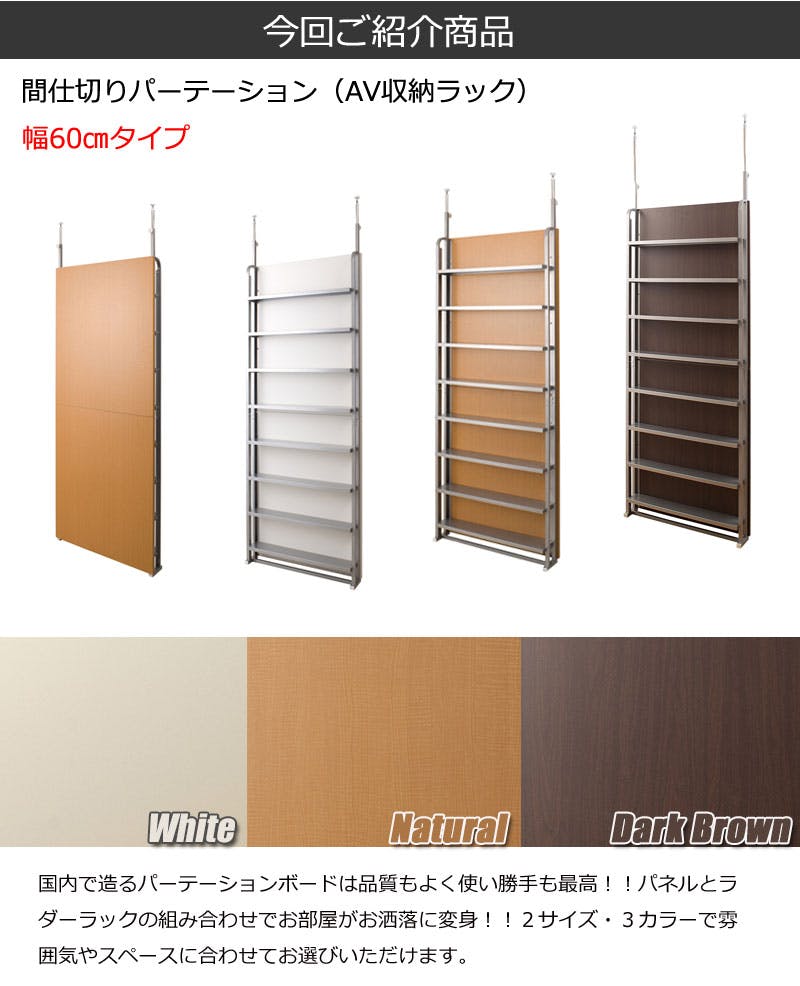 突っ張り間仕切りパーテーション幅60cm DVD収納コミック収納CD収納タイプ ホワイト オシャレ ついたて 衝立 省スペース 家具 事務所 仕切り インテリア オフィス パーティション パーテーション