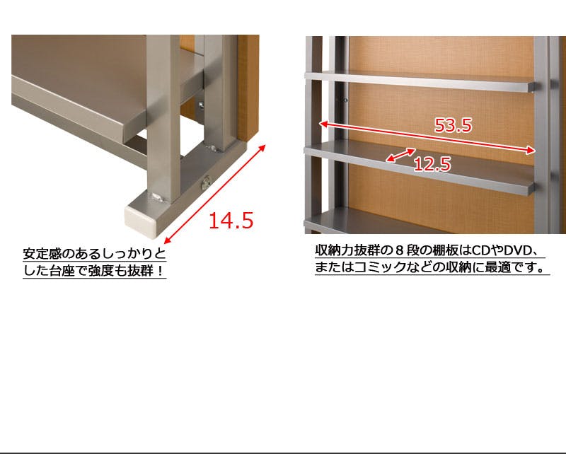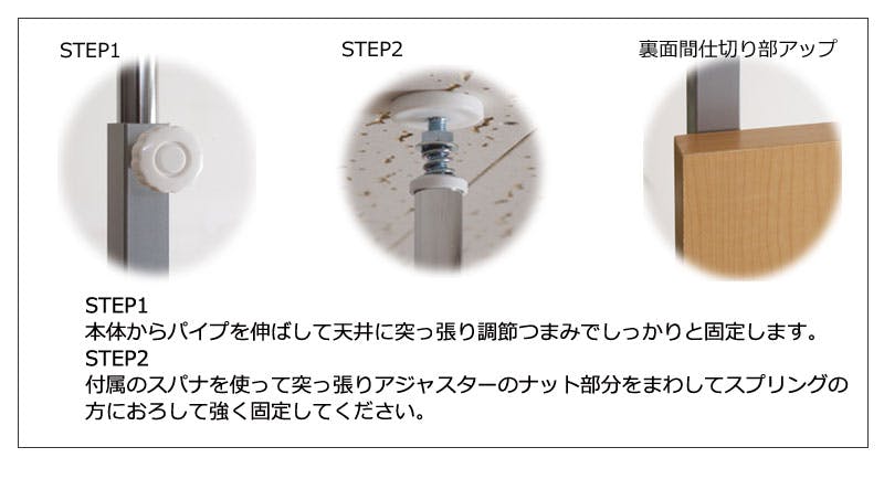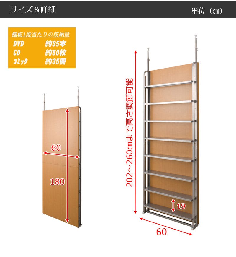 ■商品サイズ本体:(約)幅60×奥行14.5×高さ202〜260cm、収納部内部(各段):(約)幅53.5×奥行12.5×高さ19cm、目隠し部高さ:(約)182cm