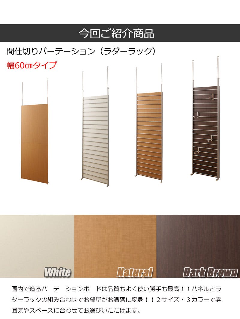 突っ張り間仕切りパーテーション幅60cm ラダータイプ ダークブラウン オシャレ ついたて 衝立 省スペース 家具 事務所 仕切り インテリア オフィス パーティション パーテーション