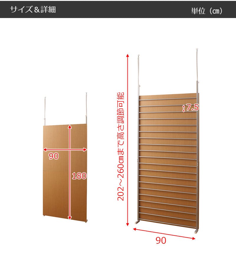 ■商品サイズ/サイズ:(約)幅90×奥行き12×高さ202〜260cmバックボード:(約)幅90×高さ180×厚み2cmフック可動間隔 :(約)7.5cmフック出幅:(約)14cm付属品:フック7個