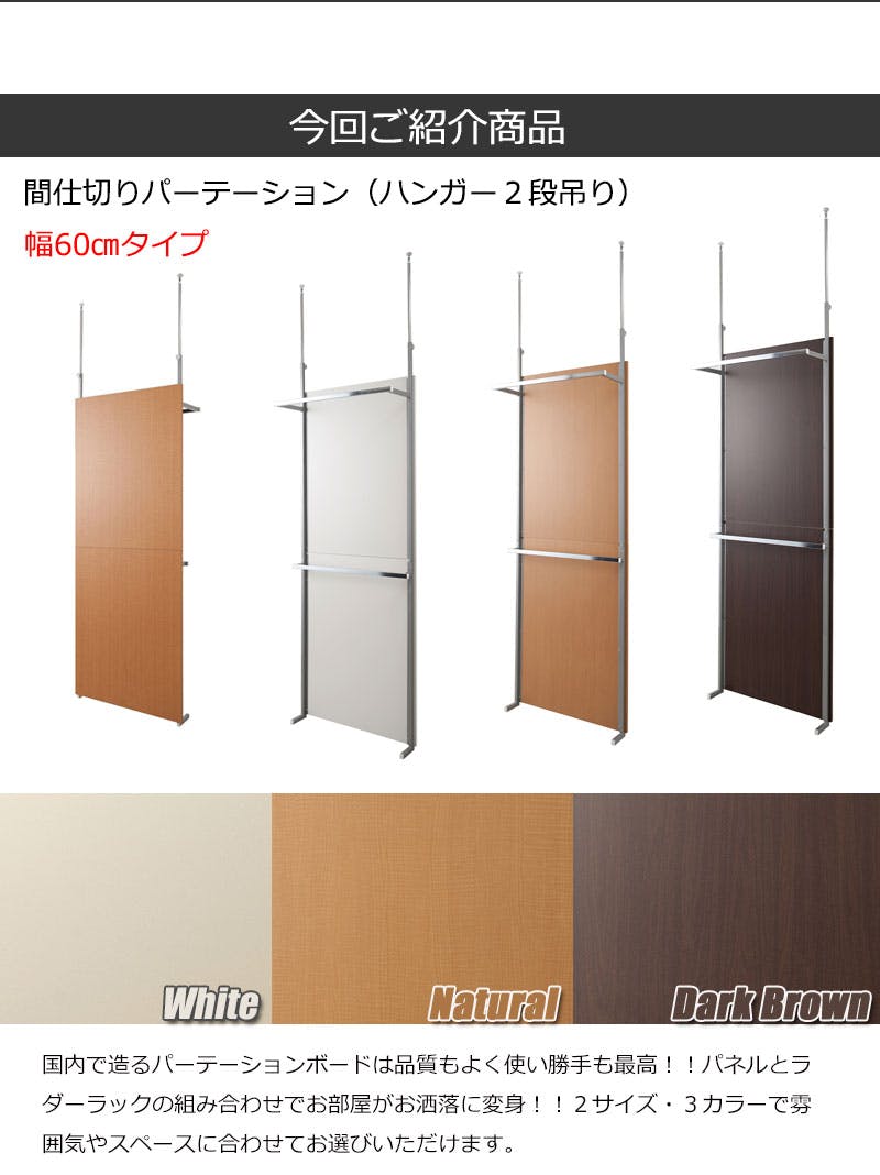 突っ張り間仕切りパーテーション幅60cm ハンガー2段タイプ ナチュラル 洋服ハンガー ワードローブ 洋服ラック 洋服かけ 洋服掛け クローゼット ハンガーラック おしゃれ ラダー ハンガー