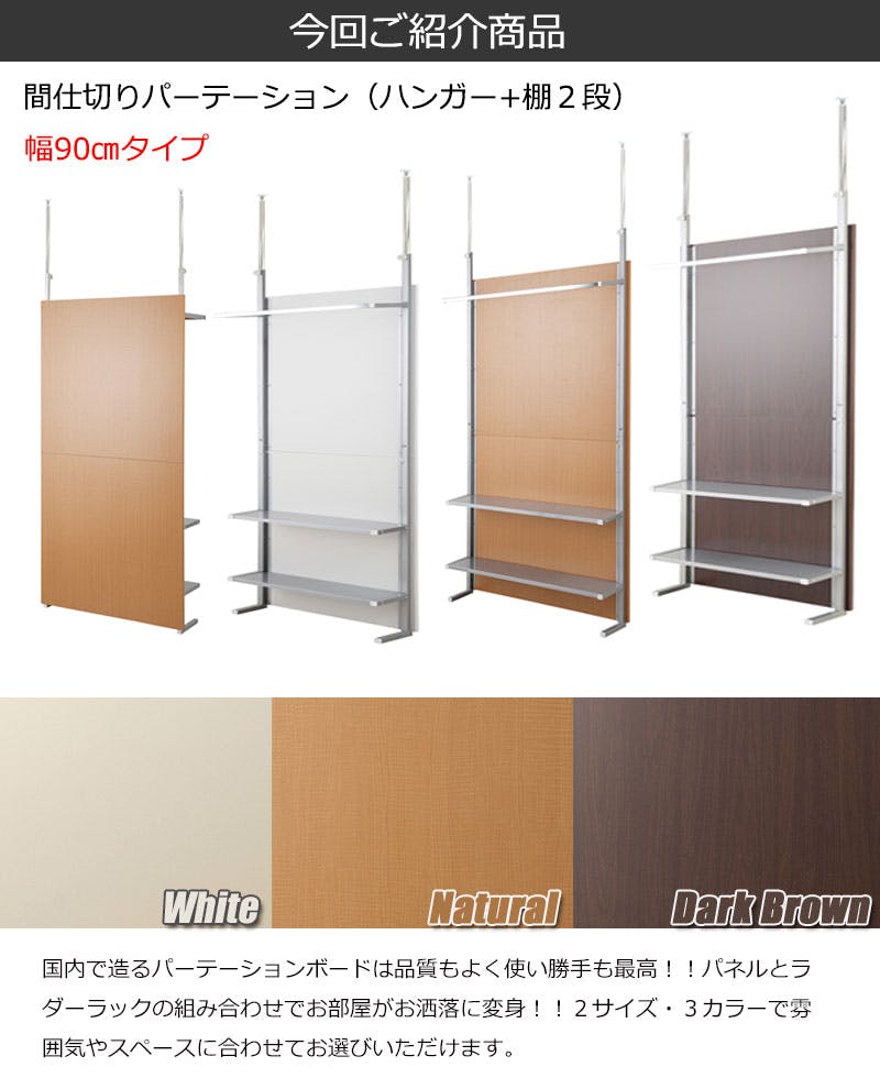 突っ張り間仕切りパーテーション幅90cm ハンガー+2段棚タイプ ナチュラル 洋服ハンガー ワードローブ 洋服ラック 洋服かけ 洋服掛け クローゼット ハンガーラック おしゃれ ラダー ハンガー