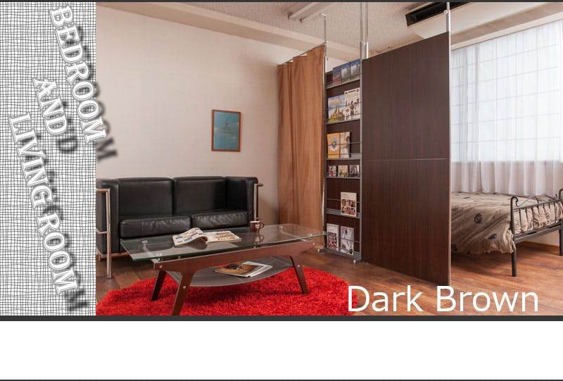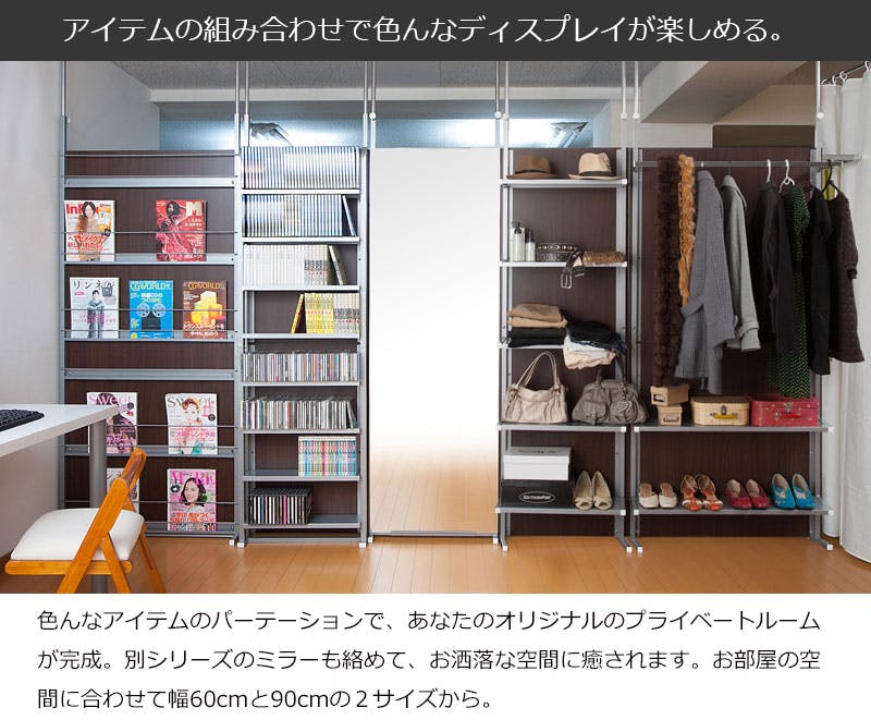 突っ張り間仕切りパーテーション幅90cm ハンガー+2段棚タイプ ダークブラウン 洋服ハンガー ワードローブ 洋服ラック 洋服かけ 洋服掛け クローゼット ハンガーラック おしゃれ ラダー ハンガー