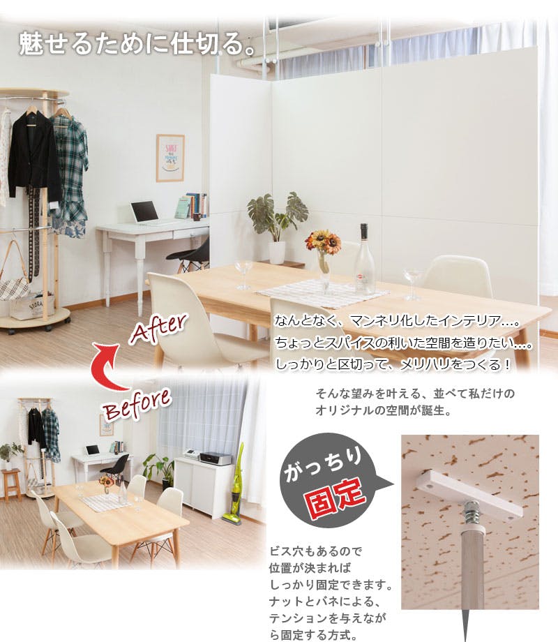 突っ張り間仕切りパーテーション幅60cm 間仕切り専用タイプ ナチュラル パーテーションラック ウォールラック 壁面ラック ラック おしゃれ パーティション 間仕切り パーテーション