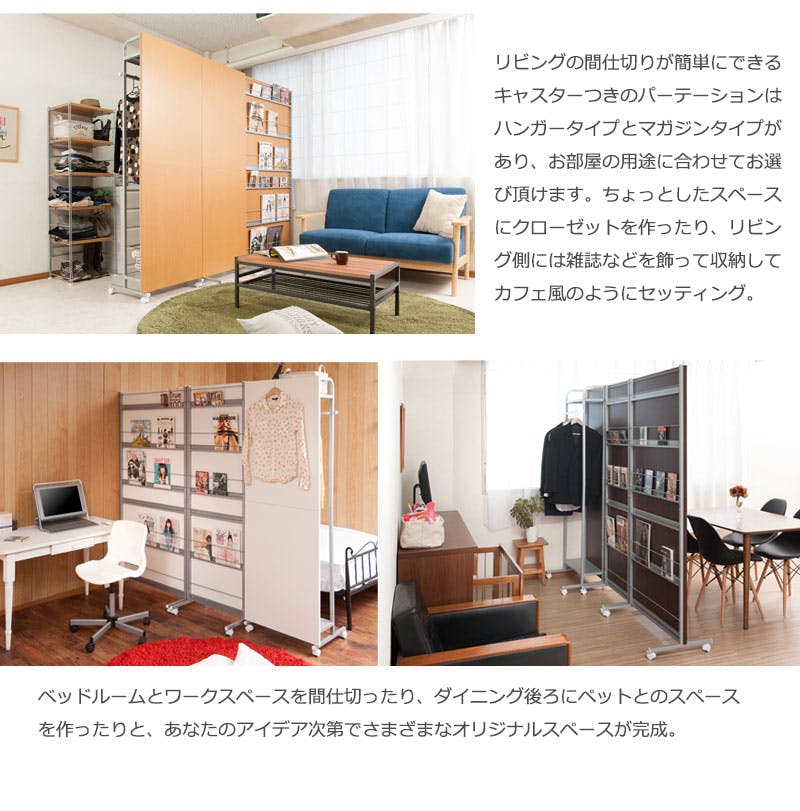 キャスター付きパーテーション幅90cm マガジンタイプ ナチュラル パーテーションラック ウォールラック 壁面ラック ラック おしゃれ パーティション マガジンラック 間仕切り パーテーション