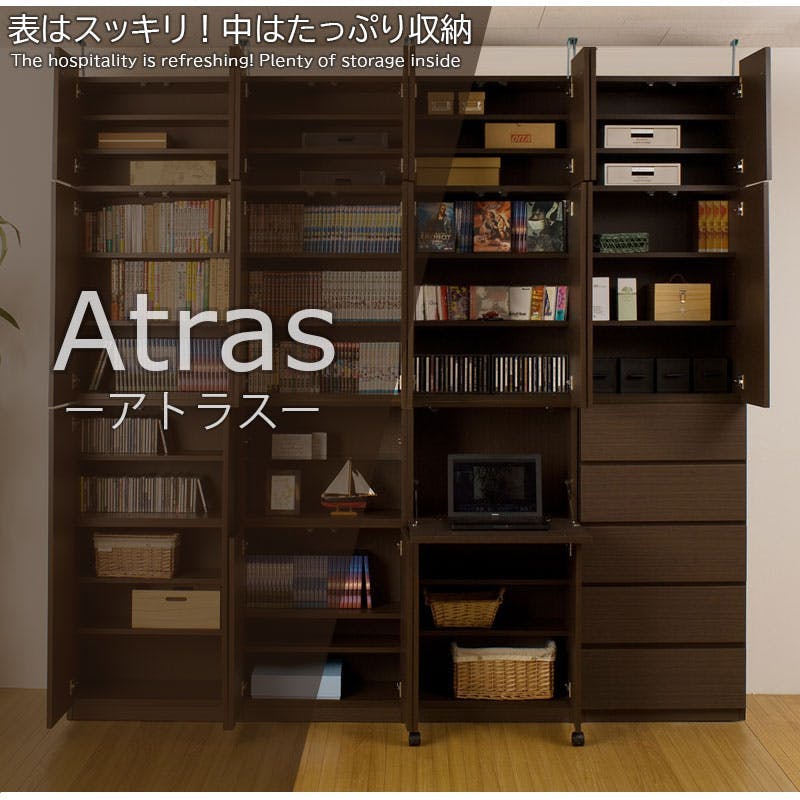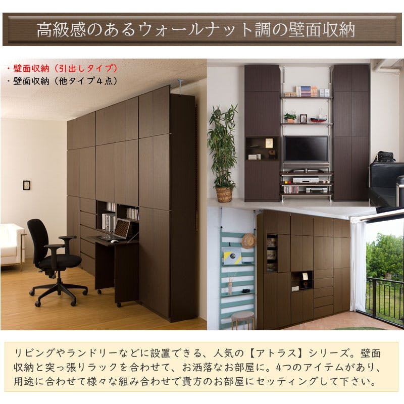 【ATRAS】 壁面収納 引出しタイプ 幅59.5 奥行31cm ブラウン 日本製 完成品 リビングボード 隙間 すき間 大川家具 機能的 つっぱり ウォールラック 壁面収納 伸縮 省スペース 突っ張り棚 ラック おしゃれ つっぱり棚