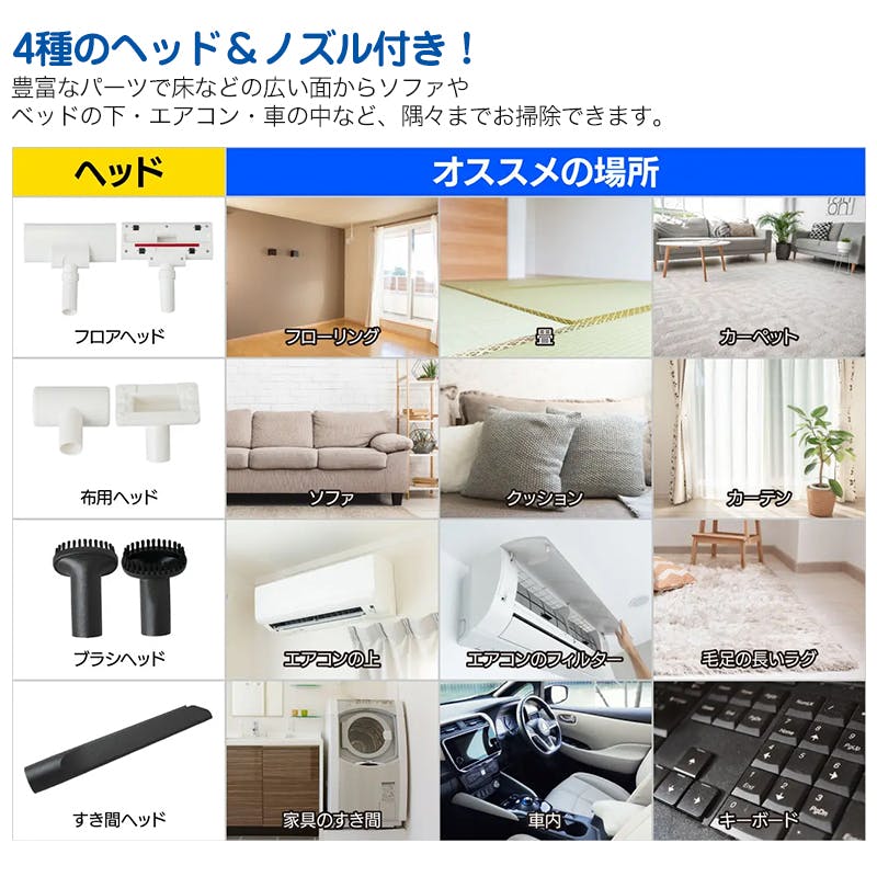 本体、延長パイプ×2、フロアヘッド、各種ノズル