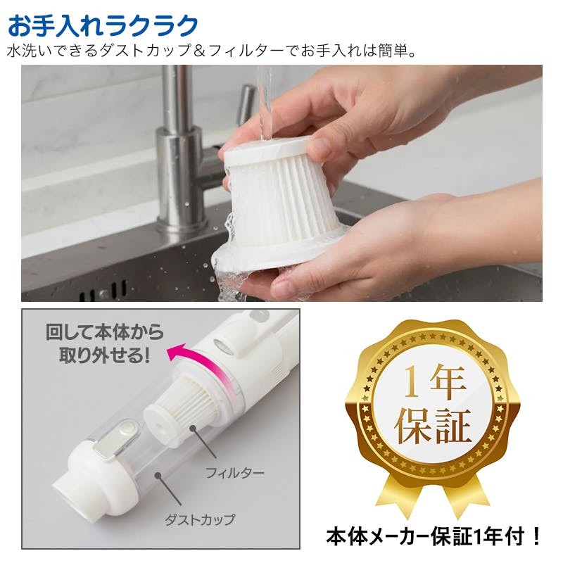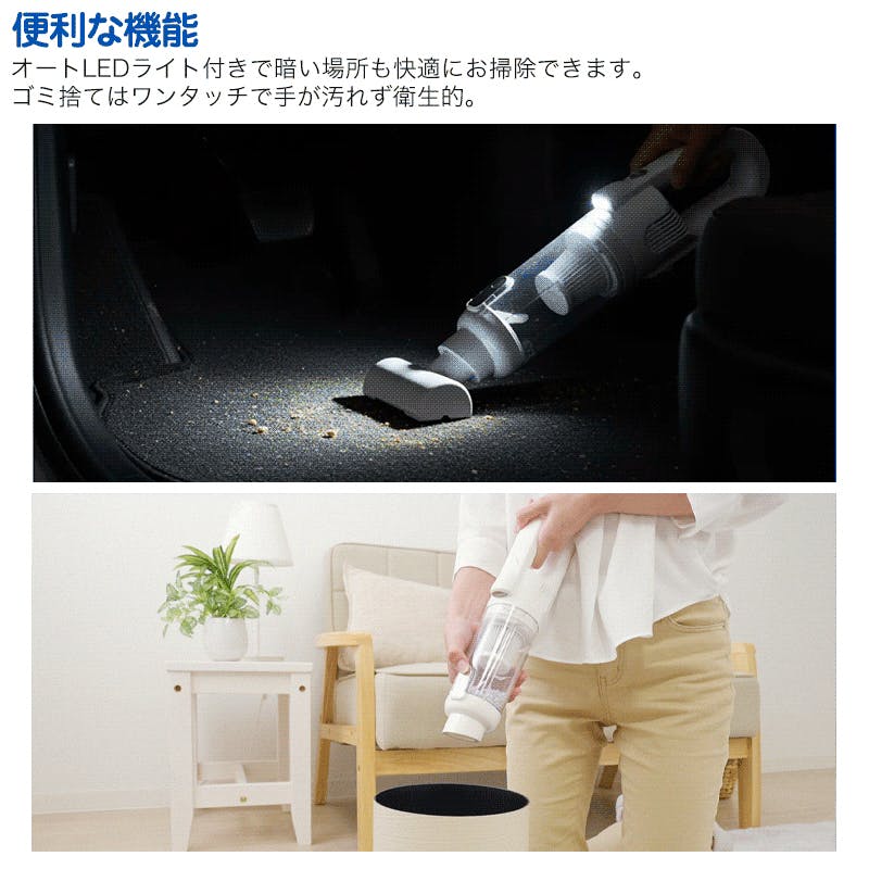 【充電式 軽量スマートクリーナー】 ちあふる 軽量でもパワフル 500円玉も吸い上げます!オートLEDライト付きで暗い場所も快適!約4200Pa ハイパワー吸引 USB充電式 軽量コードレス 掃除機 多機能ノズル JAN:4571414699426