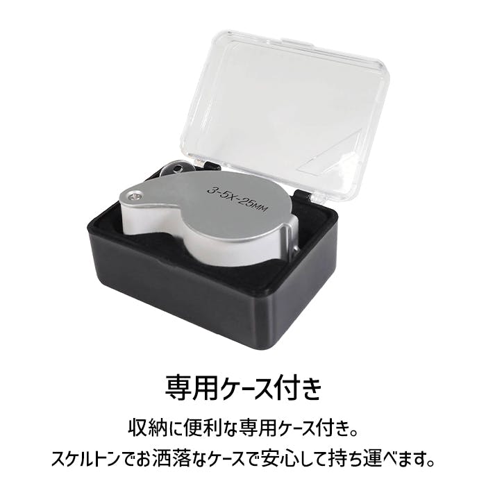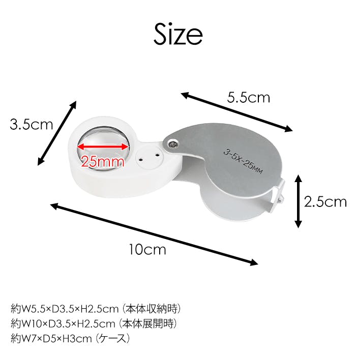 ■[レンズ径] 25mm ■[展開時]W10×D3.5×H2.5cm ■[収納時]W5.5×D3.5×H2.5cm ■[ケース]W7×D5×H3cm